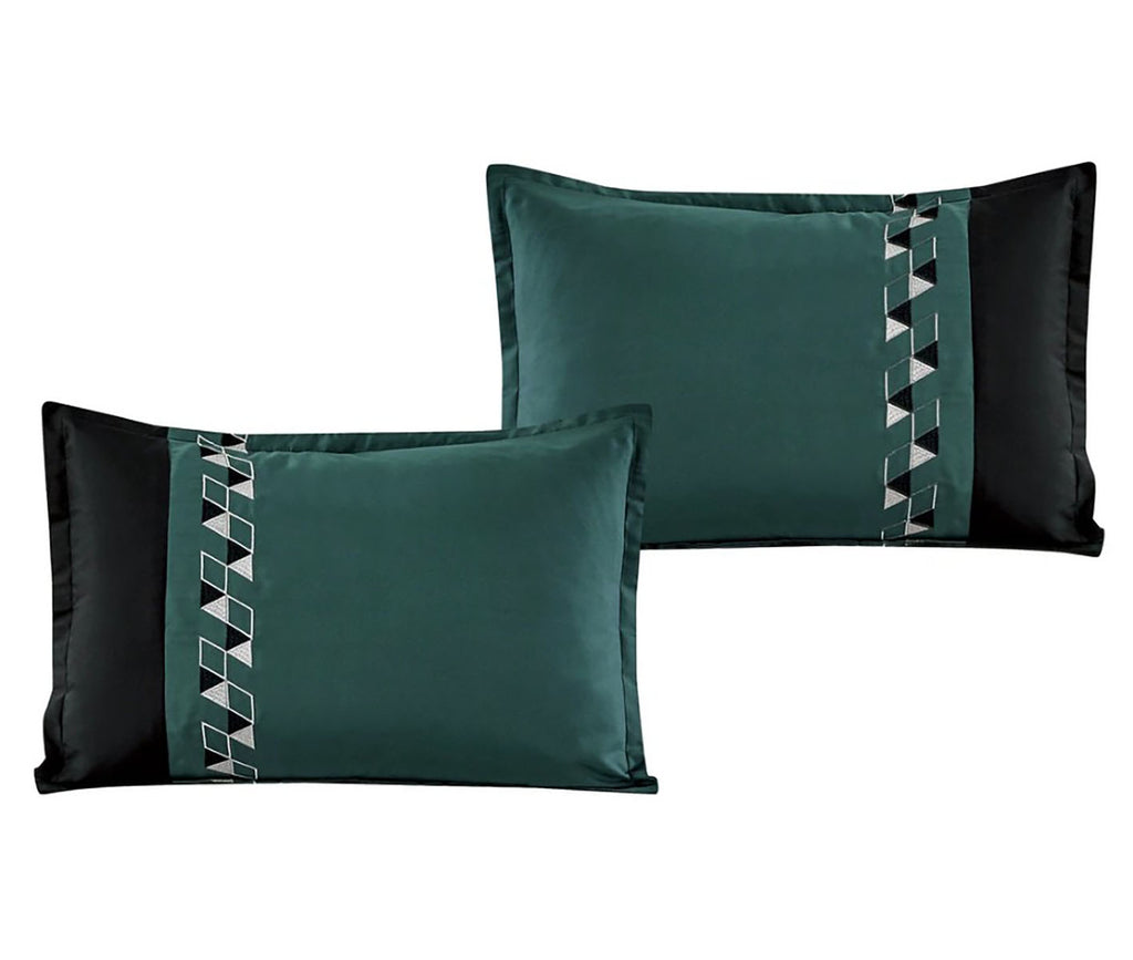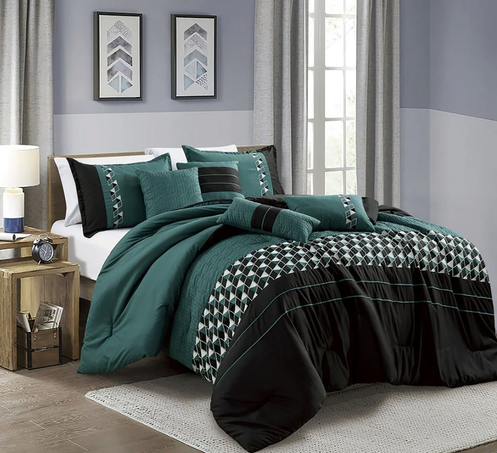 7 Piece Black Green Geometric Soft Bedding Comforter Set