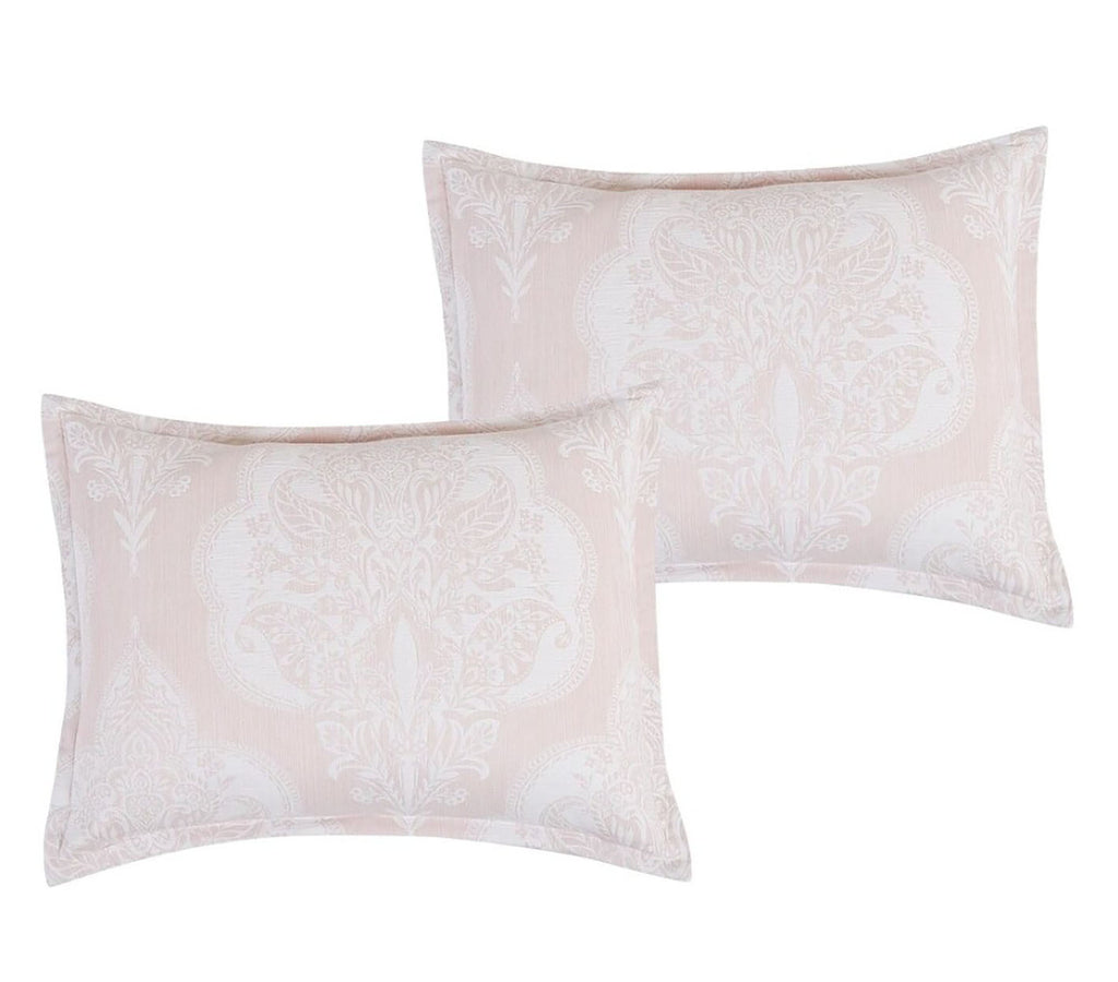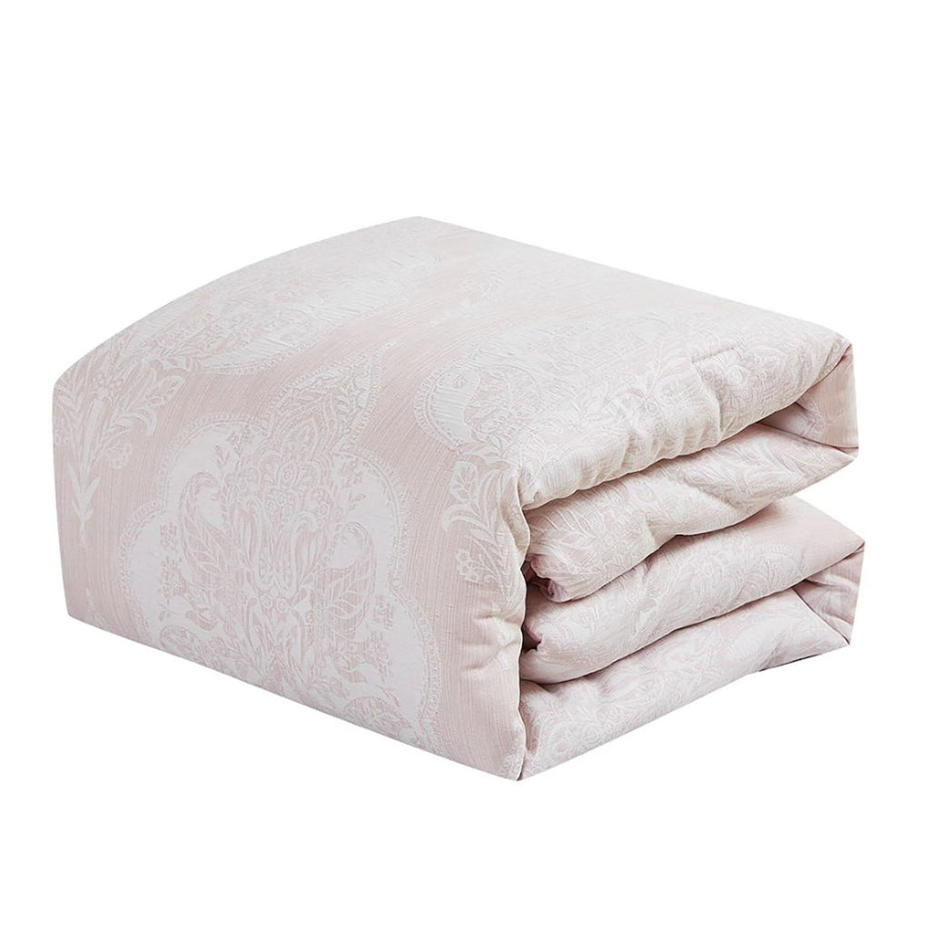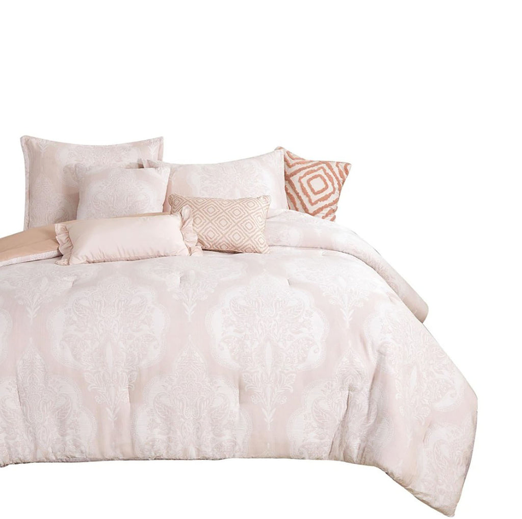 King Size 7 Piece Pink Floral Boho Comforter Set Boho Embroidery Soft Bedding