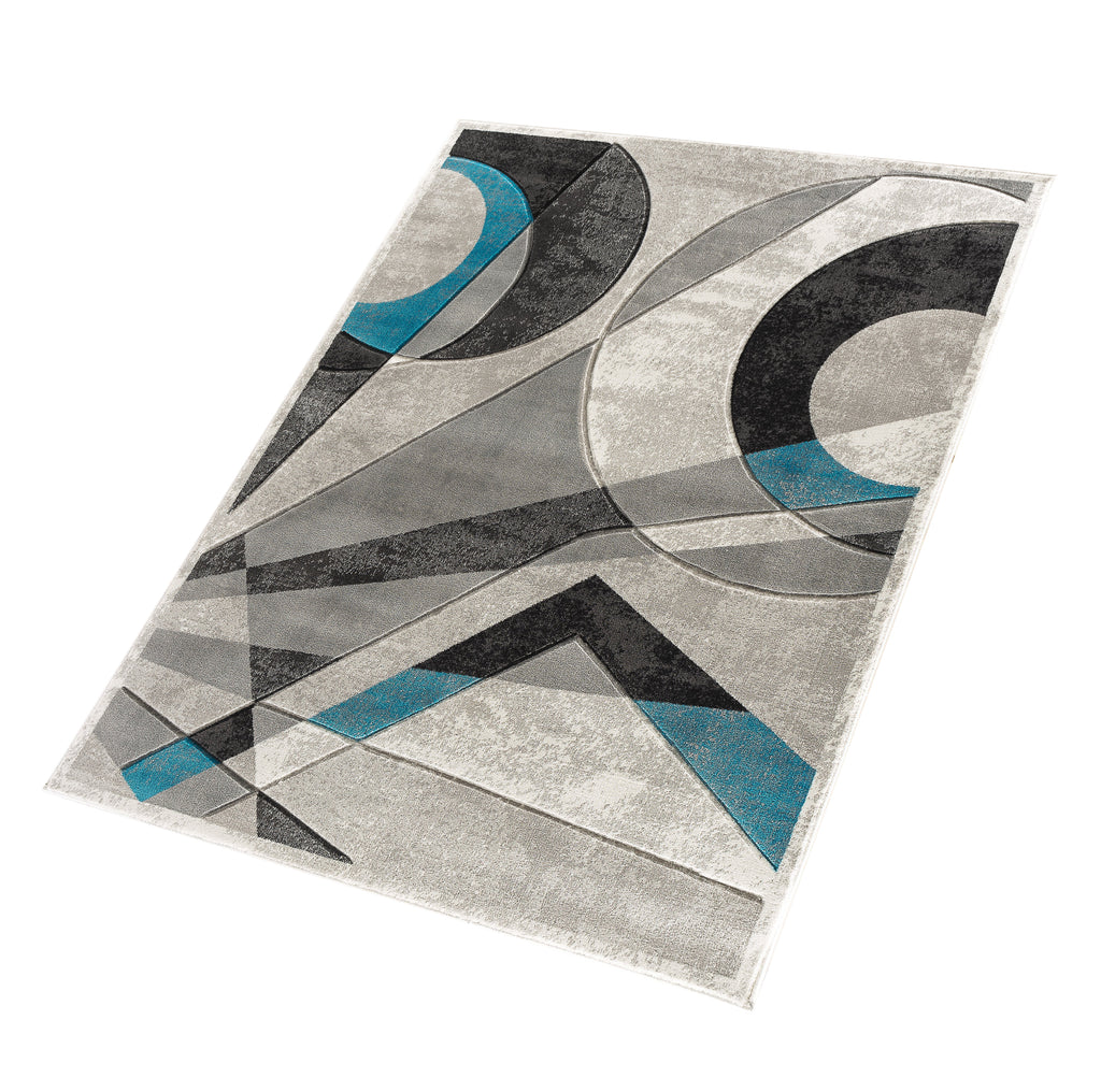 Turquoise Geometric Hand-Carved Soft Living Room Area Rug