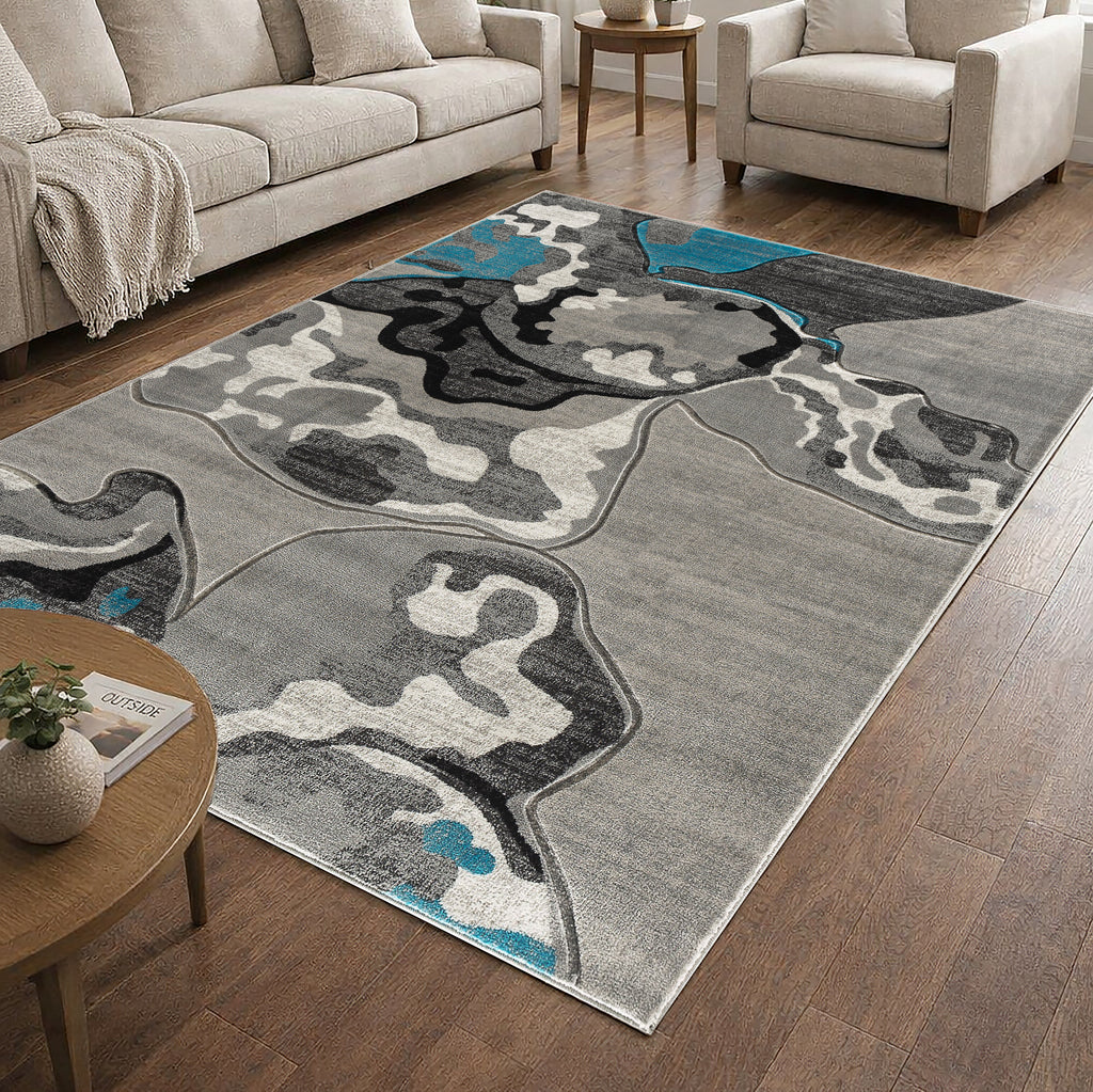 Grey Turquoise Abstract Hand-Carved Soft Living Room Area Rug