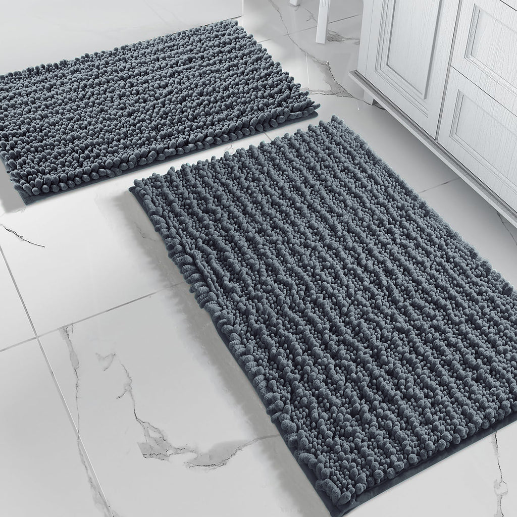 • WATER ABSORBENT: Our bath rugs are made with hundreds of individual piles. The thick chenille fabrics absorb water quickly to help your floors from dripping water while you're getting out of the bath. Moisture is trapped in the mat's high pile, allowing the bath rug to dry quickly.