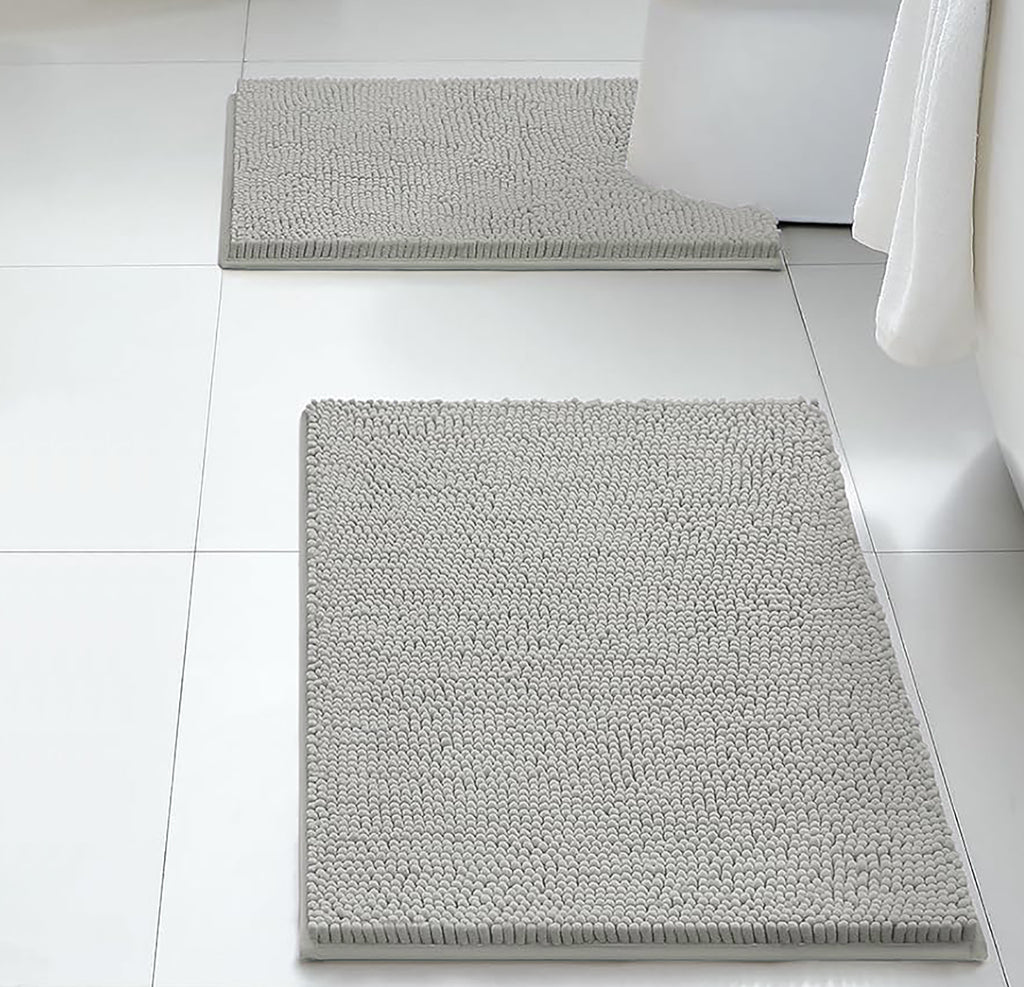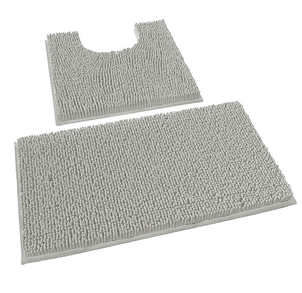 2 Piece Set Warm Grey Soft Cozy Plush Chenille Bath Mat Bathroom Rug