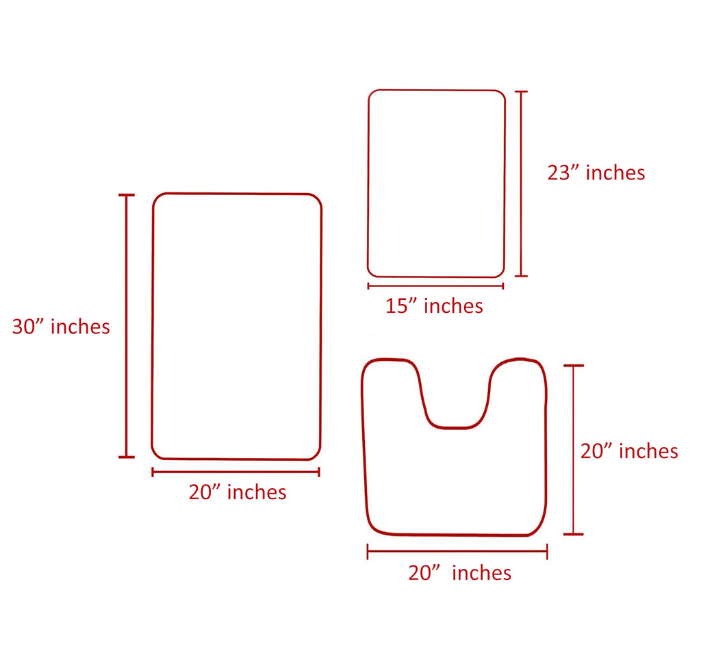 • SIZES: 1 Rectangular Bath Mat (30"x20"), 1 Rectangular Bath Mat (23"x15") & 1 Contour Bath Mat (20"x20").
