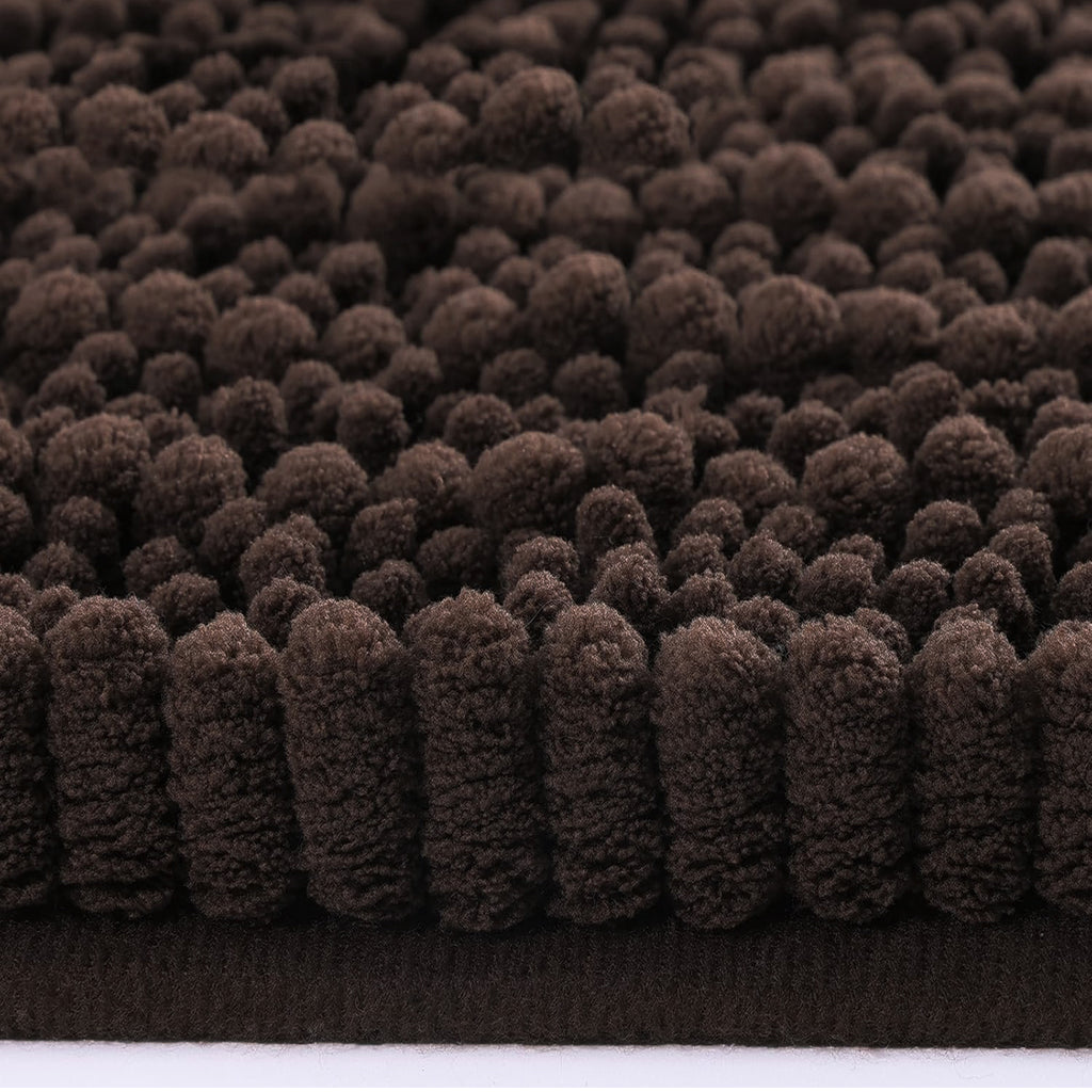 • MATERIALS: 100% polyester with a non-slip backing. Fiber that's incredibly soft and durable. Our rugs use thousands of ultra-soft and plush, shaggy chenille fibers for that sensational, cloud-like feeling when you step out of the shower.