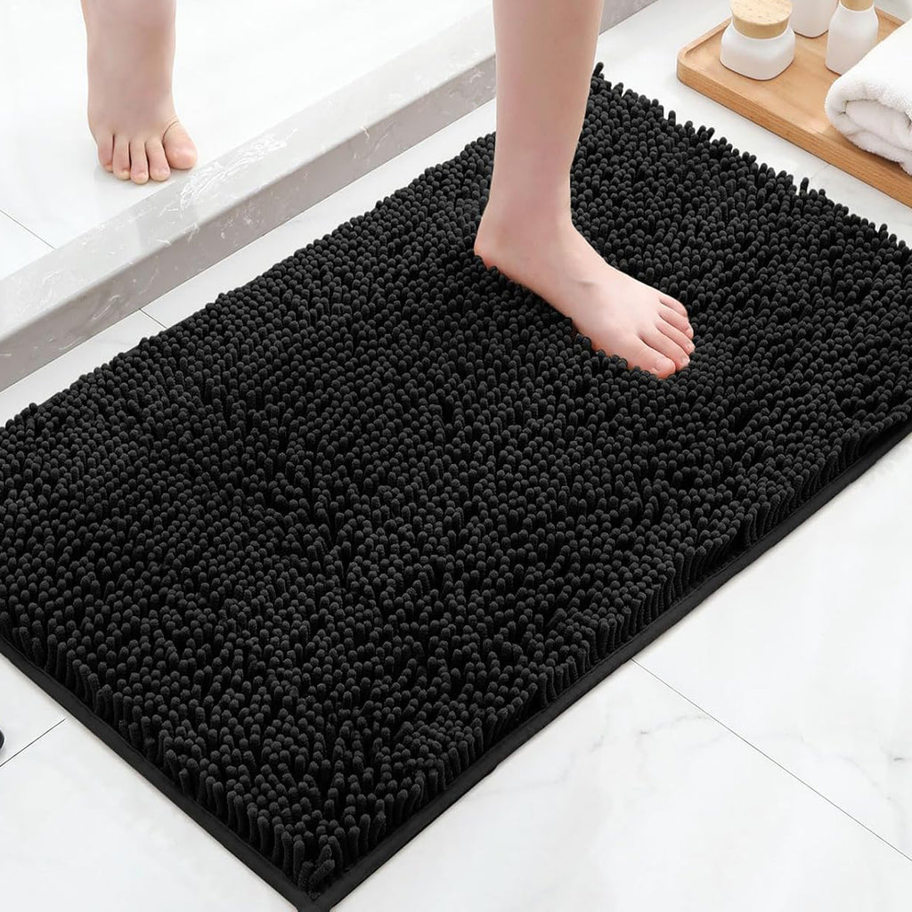 36"x24" - Black Large Soft Cozy Plush Chenille Bath Mat Bathroom Rug