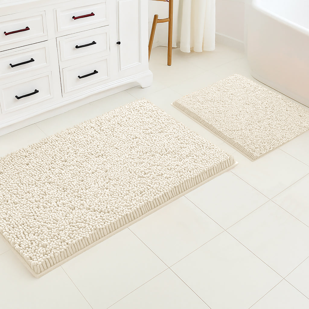Extra Large 2 Piece Set Cream Soft Cozy Plush Chenille Bath Mat Bathroom Rug
