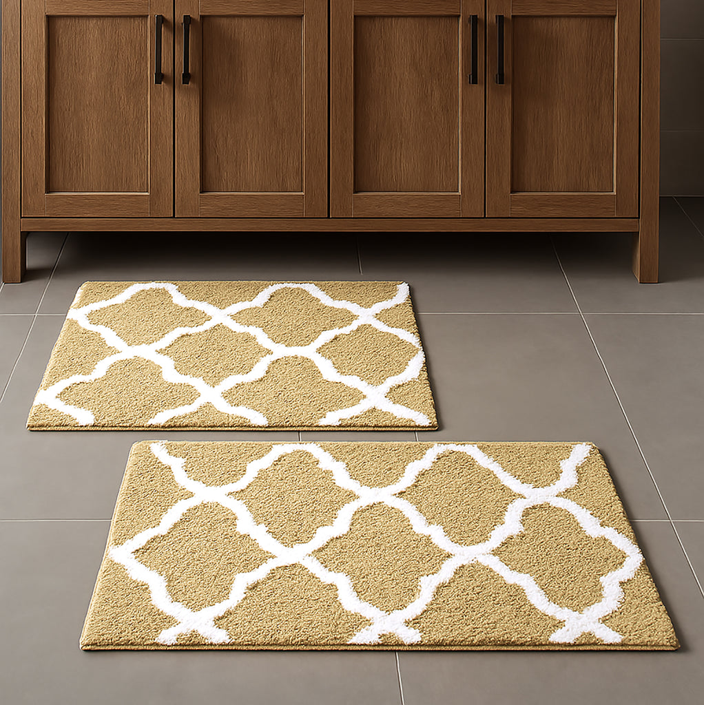 • COMFORT: Elegant and beautifully designed 2 Piece bathroom rug set with Trellis pattern. Soft and elegant bath rug, feels great on your feet.