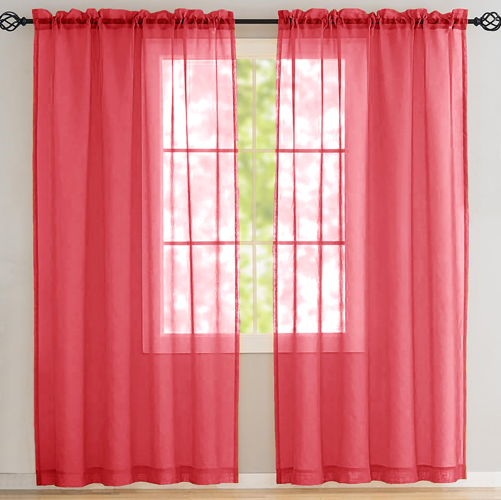 Red Sheer Window Rod Pocket Curtain Set 90" Inches Long (2 Panels)