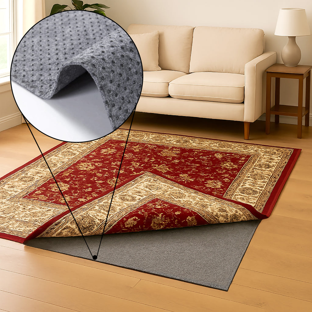 Not only will this rug pad take the comfort of your area rug to another level, it will also makes it safer by not slipping around on hard flooring surfaces because the floor side of this rug pad features unique non-slip grip traction dots