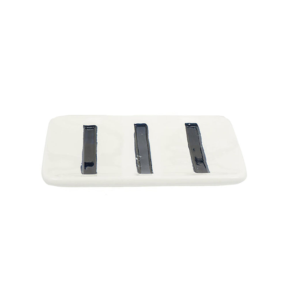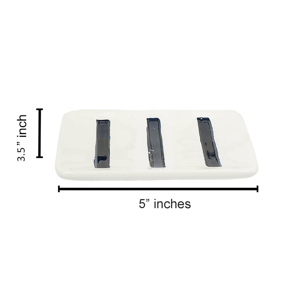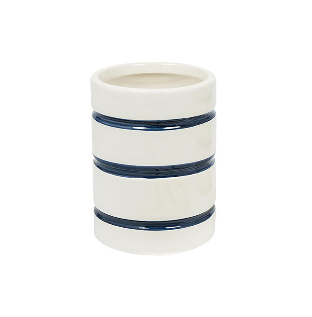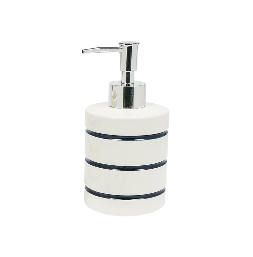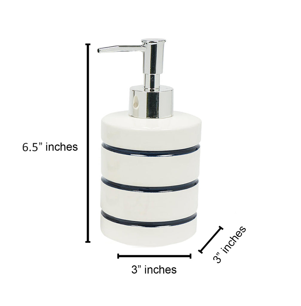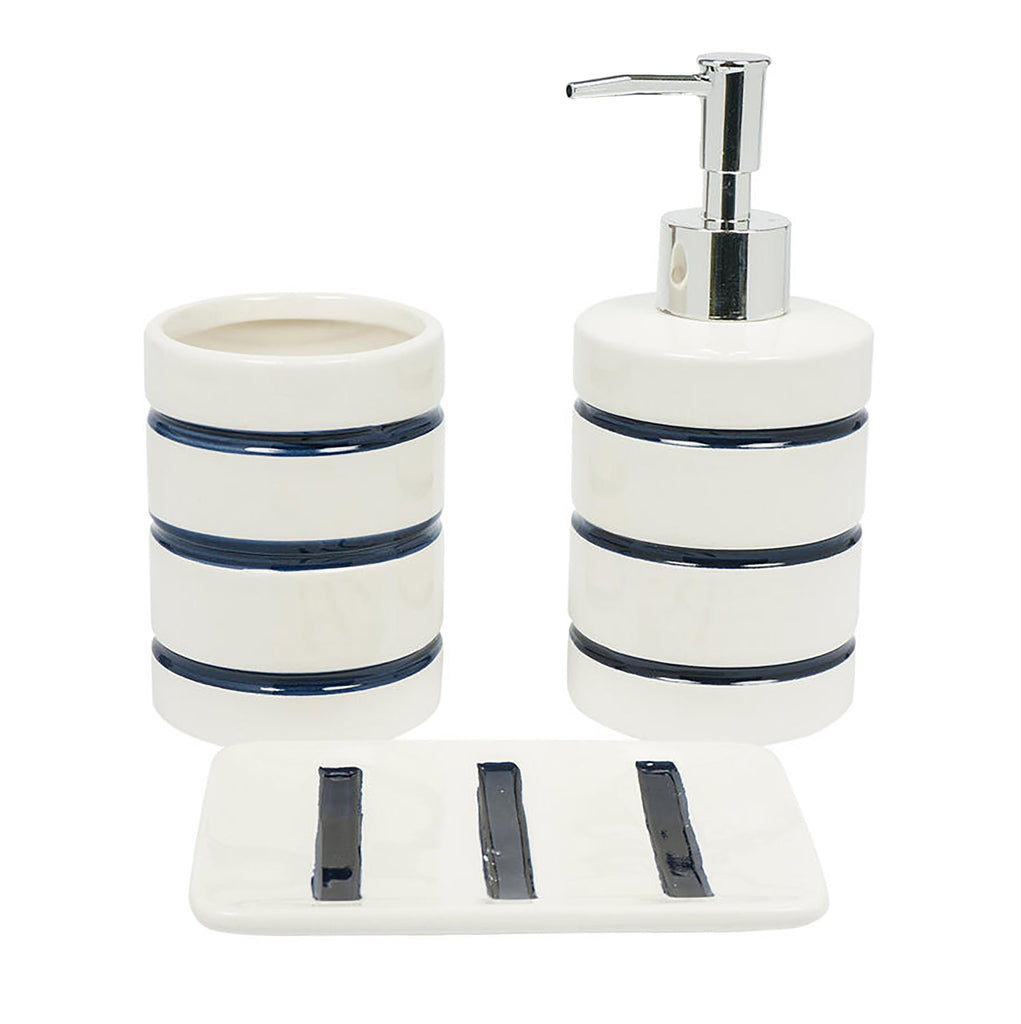White Navy Striped Dolomite Bathroom Accessories Set - Soap Dispenser, Soap Dish & Tumbler