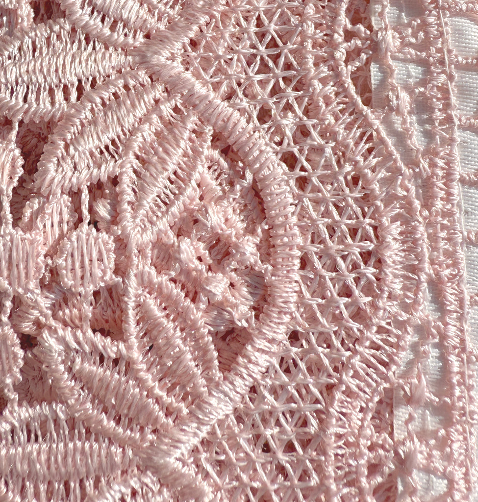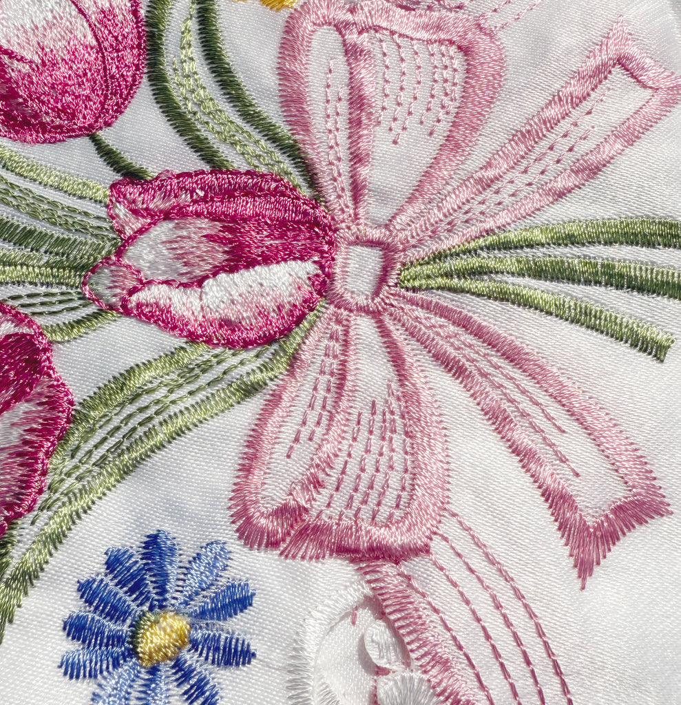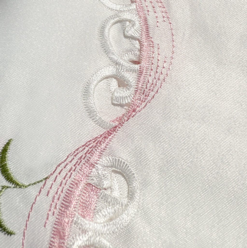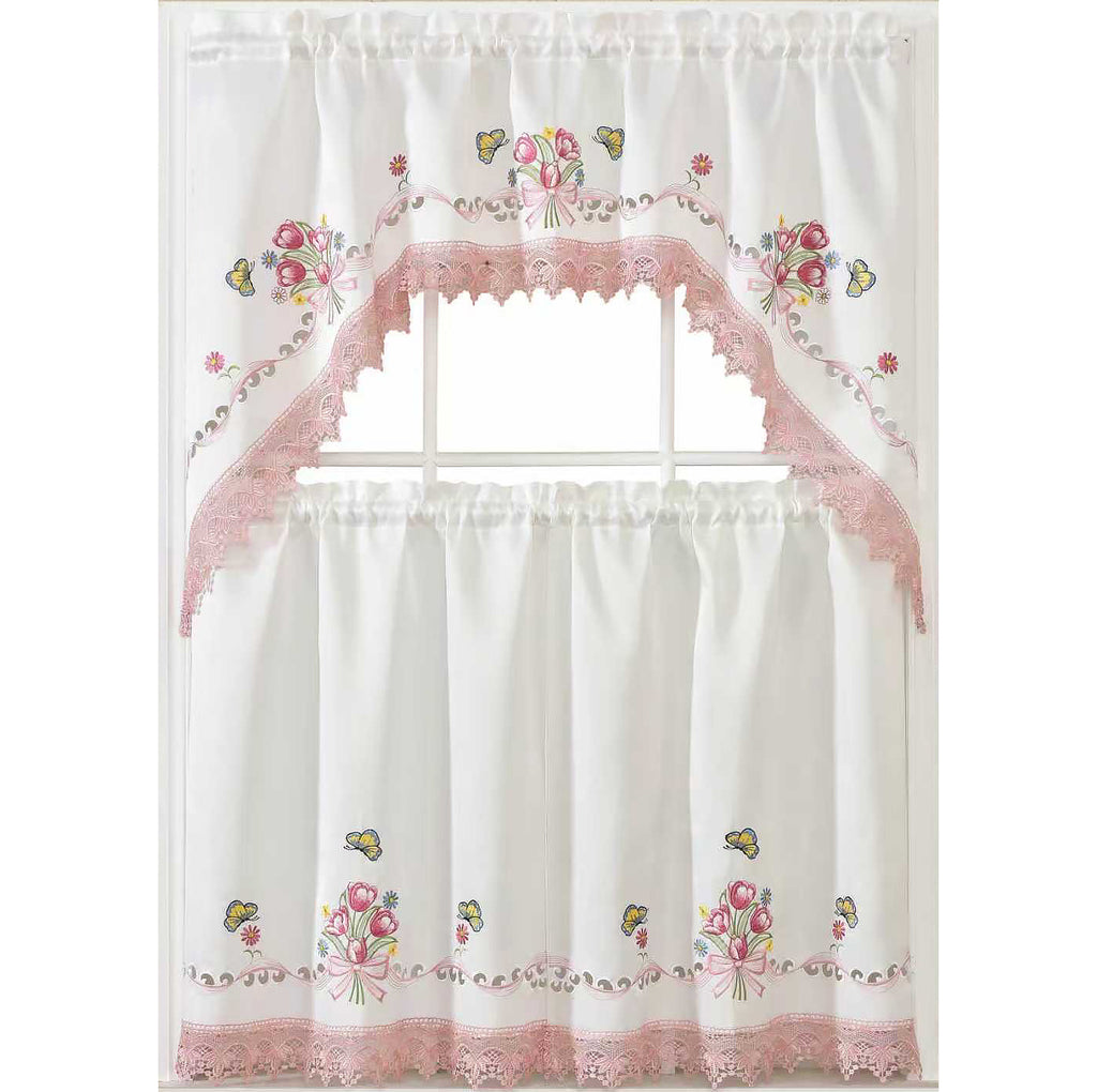 White Pink Bitterly Embroidery Kitchen Curtain 3PC Set Swag & Tiers Set